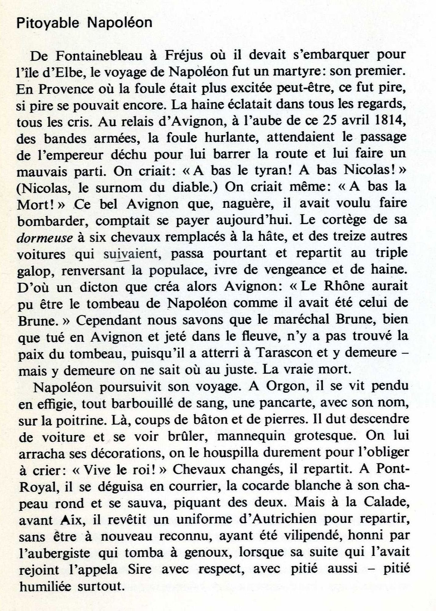 Le 2 avril 1814, Napoléon est déchu par le Sénat et est forcé à abdiquer par le traité de Fontainebleau. L'Empereur est alors exilé sur l'île d'Elbe, située au large de la Méditerranée. Son passage dans une Provence restée royaliste, est une réelle épreuve... Il arrive sur l’île le 4 mai 1814. A peine installé, il pense à son retour.