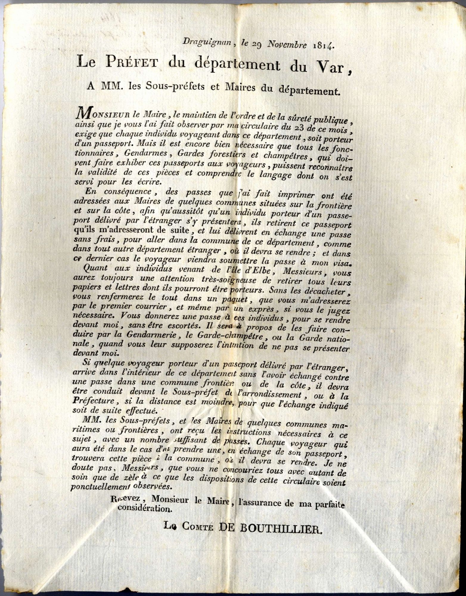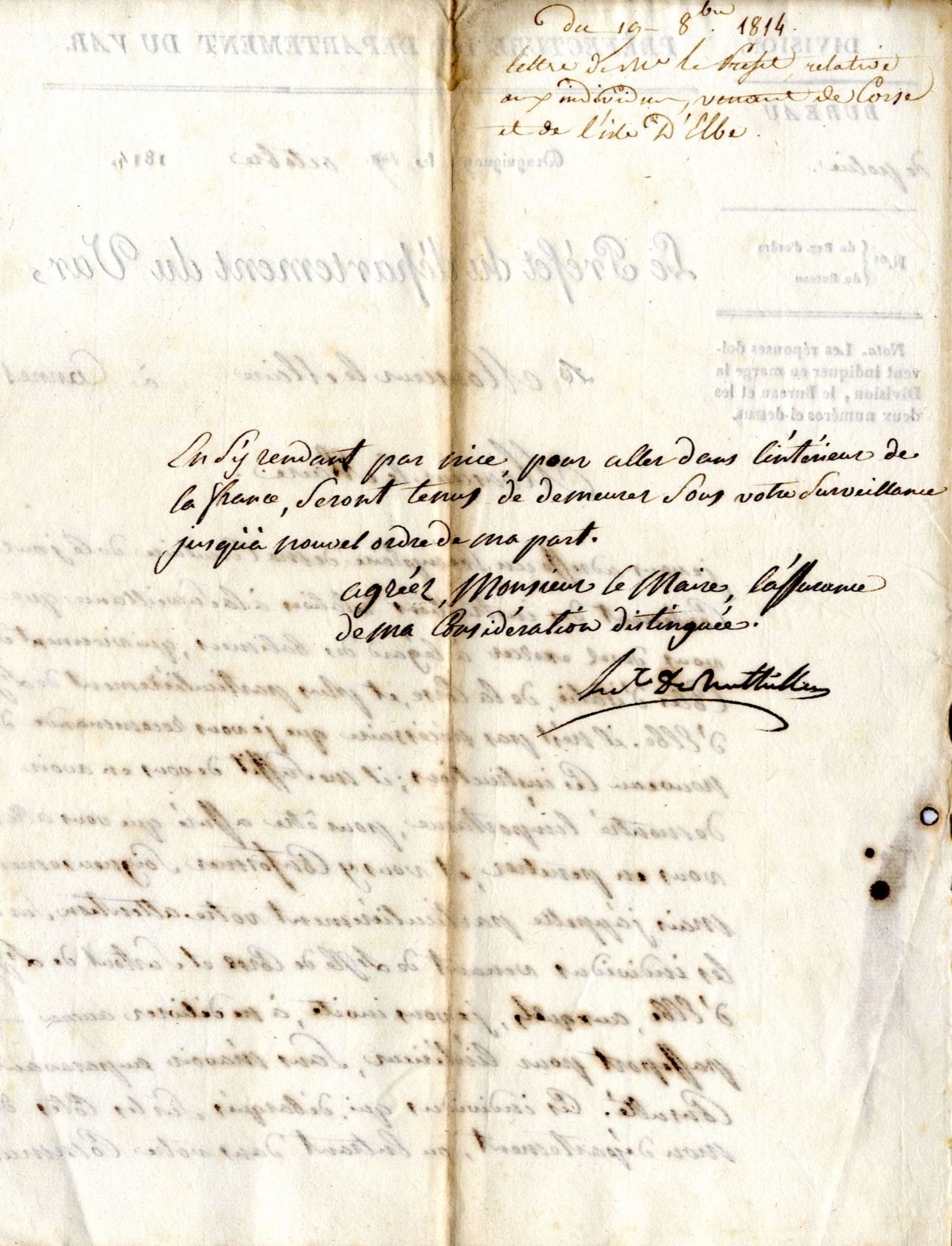 Départ pour l'île d'Elbe et surveillance (1814-1815)