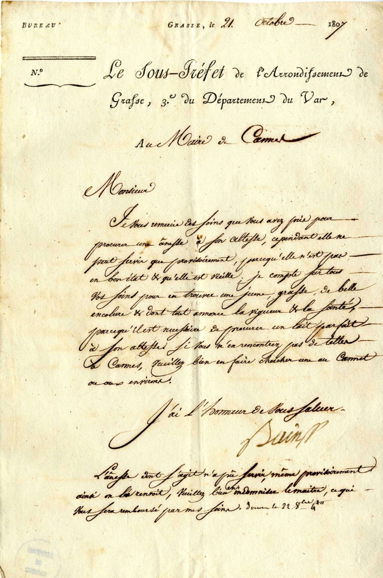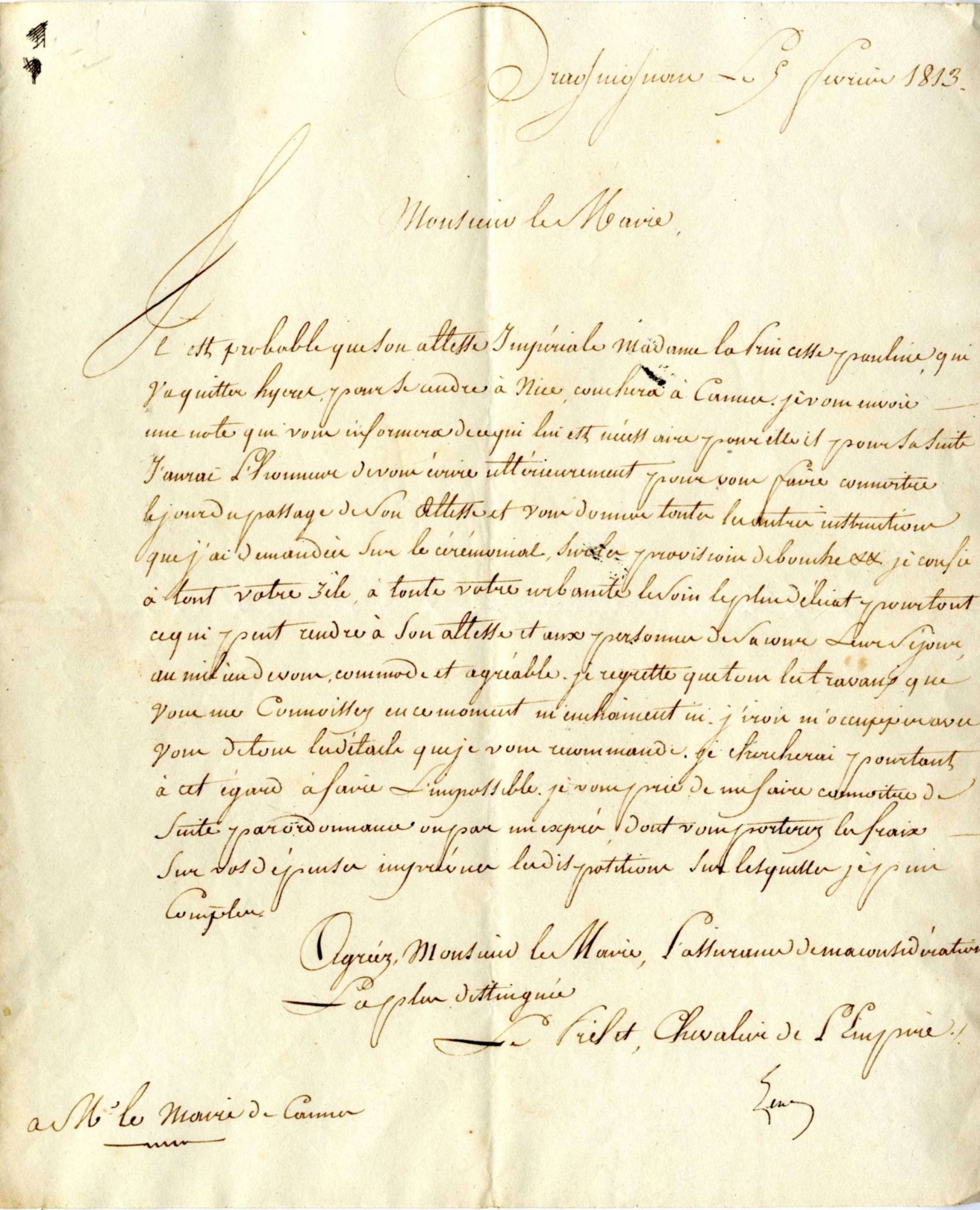 En 1807... du lait d'ânesse de qualité est recherché pour satisfaire les caprices de la "Princesse Borghèse" qui n'est autre que Pauline Bonaparte, petite soeur de Napoléon, qui passera souvent par Cannes pour rejoindre l'Italie, jusqu'à la chute des Bonaparte. Les Archives conservent la trace de ces passages, de 1807 à 1813. Pour revoir la généalogie des Bonaparte :