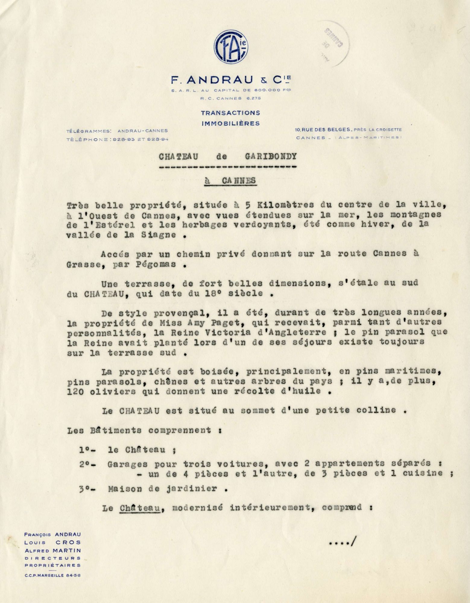 Amy reçoit, de sa mère, qui décède en 1914, en donation, le domaine de Garibondy. Elle vécut heureuse dans son domaine, entretenu par une domesticité nombreuse.