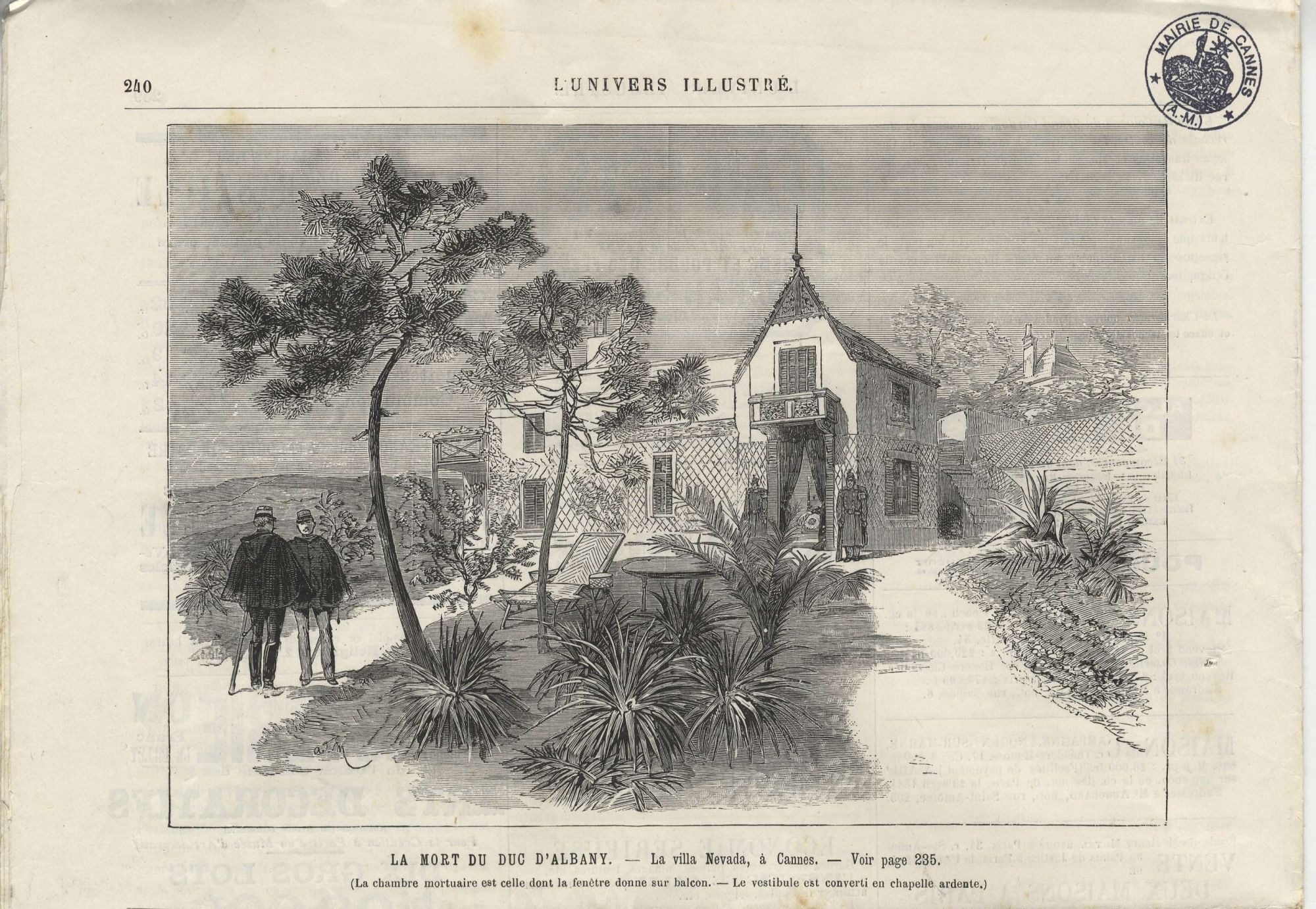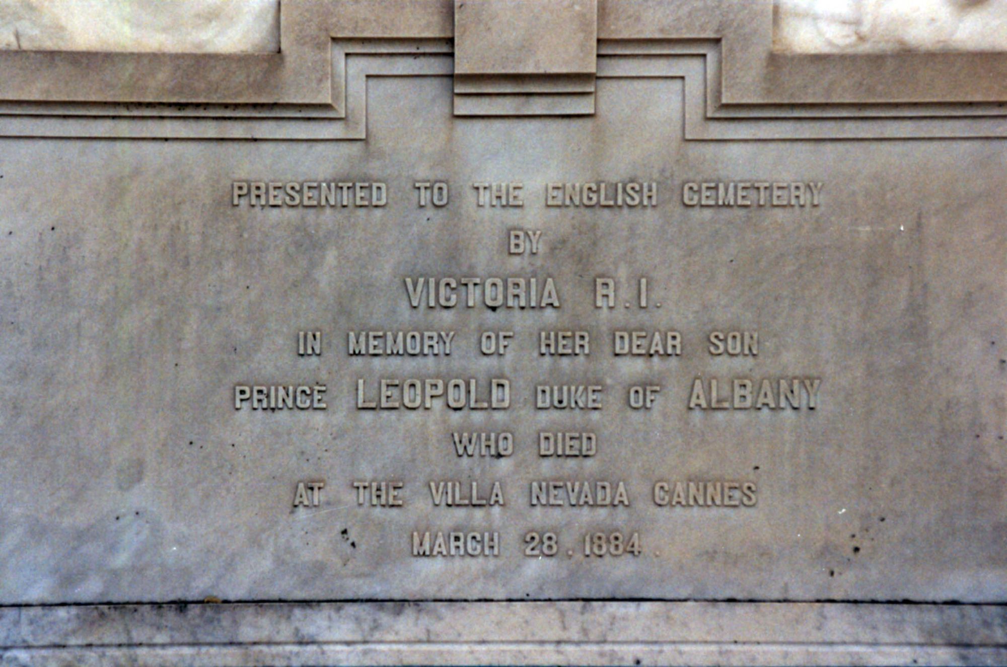 Cannes reçoit la visite de la famille royale d'Angleterre, en la personne de S.A.R. la Reine Victoria, Impératrice des Indes, qui règne à partir de 1837. Des monuments sont érigés en son honneur, comme à Nice. Elle vient prier, sur les lieux où l'un de ses fils, le prince Léopold Georges, Duc d'Albany, né en 1853, hémophile, est décédé des suites d'une chute, en 1884.