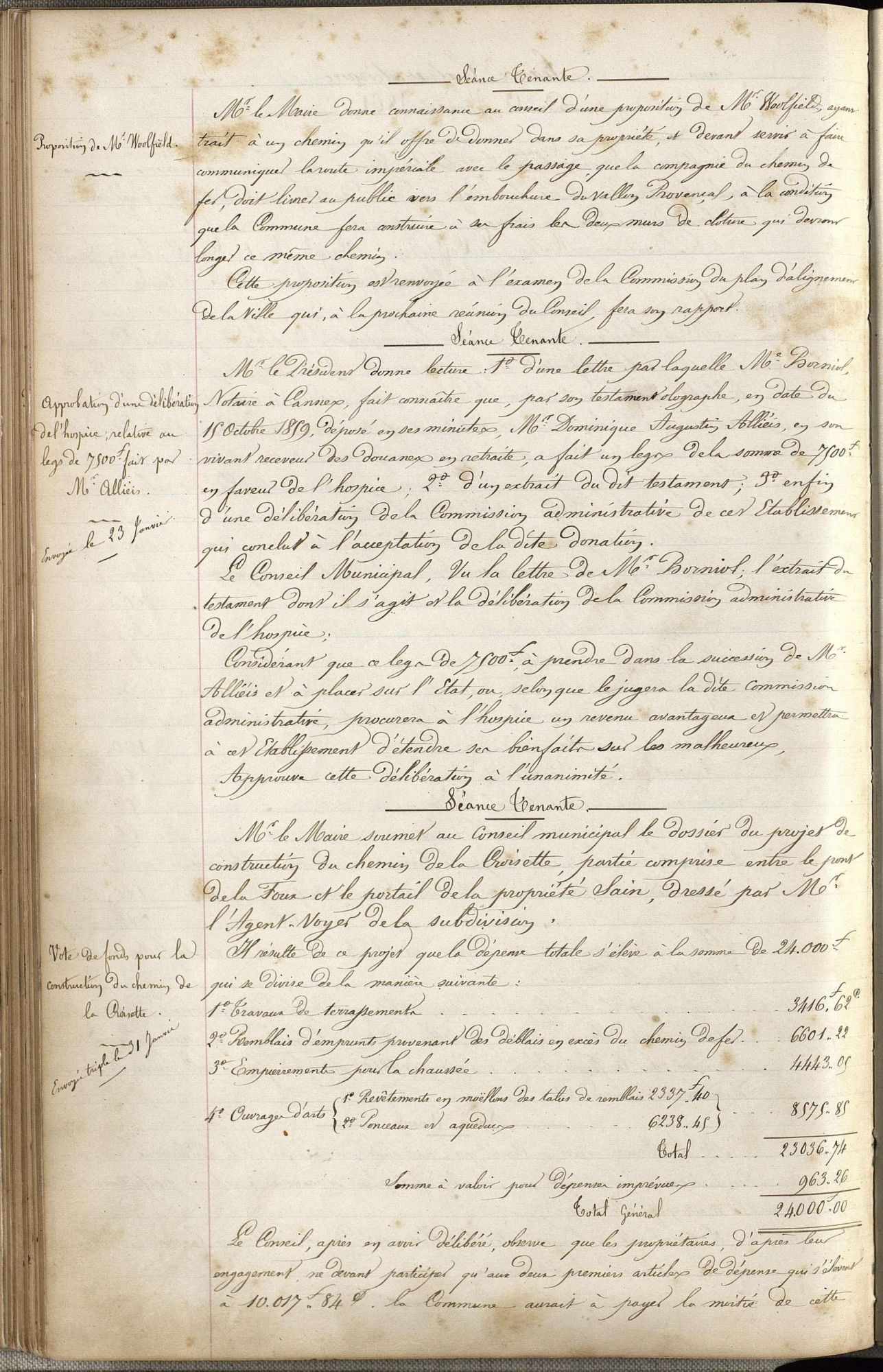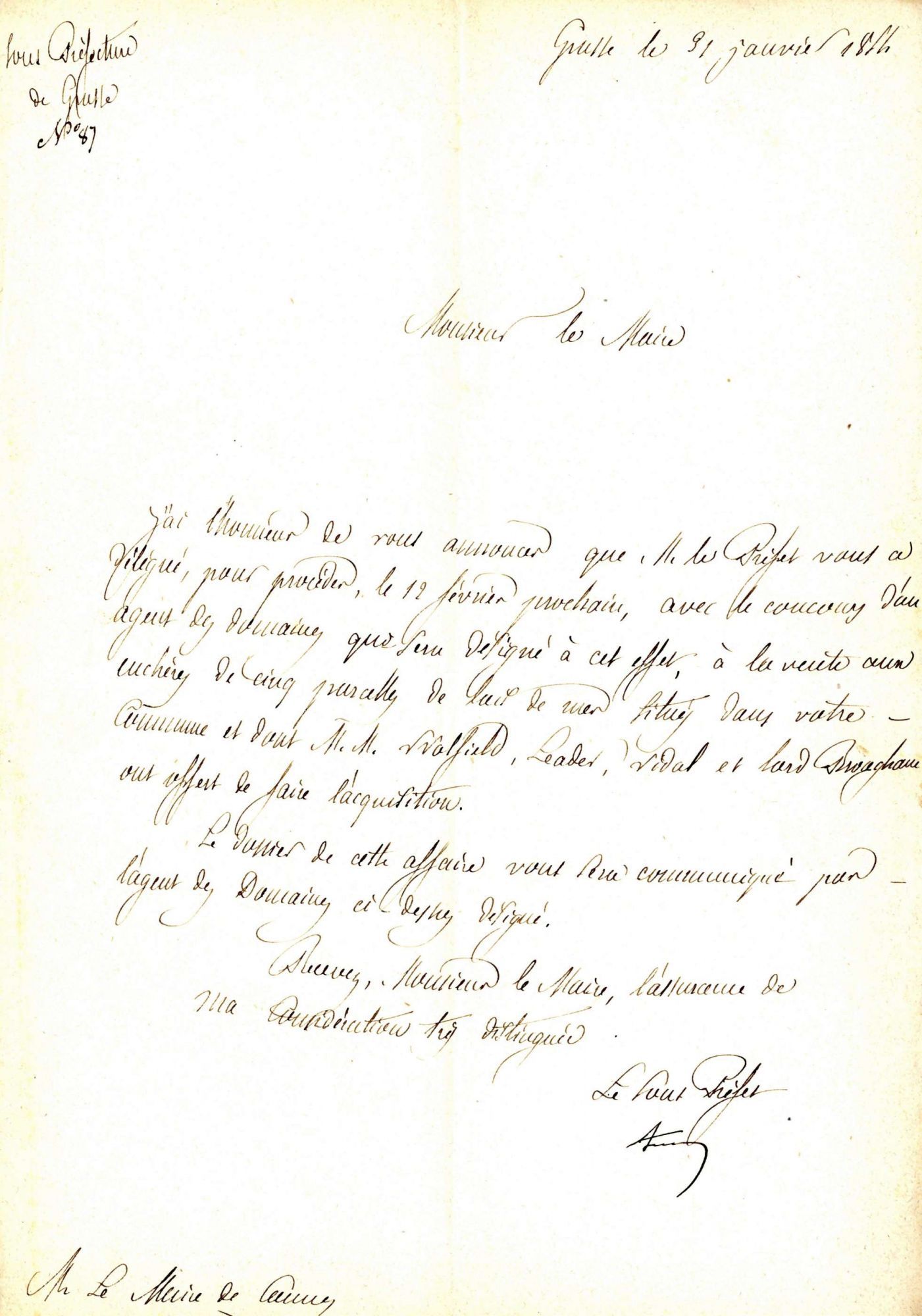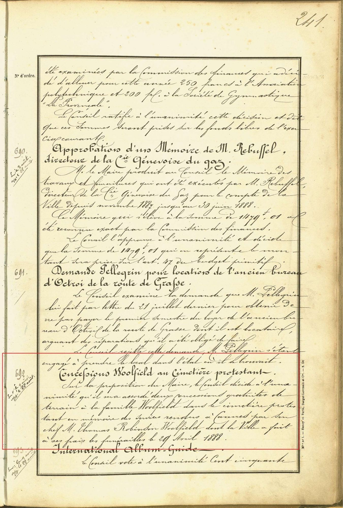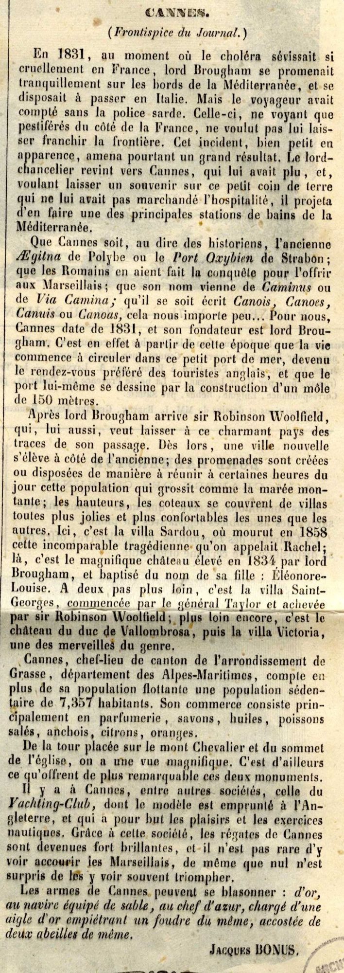 Sir Thomas R. Woolfield (1800-1888) a-t-il simplement suivi Lord Brougham, comme beaucoup d'autres ? Il résida dans une villa, dite Victoria. Ils se connaissaient bien puisque nous détenons une correspondance échangée entre ces deux personnages, ainsi qu'avec un autre hivernant, Sir J. Temple Leader. Lord Woolfield aurait dit : "Au cours de 7 ans de voyage, en Espagne, en Egypte, en Palestine, en Syrie, en Asie Mineure, en Turquie et en Grèce, à la recherche d'un coin où passer mes derniers jours, je n'avais rien trouvé qui me séduisit autant que Cannes."