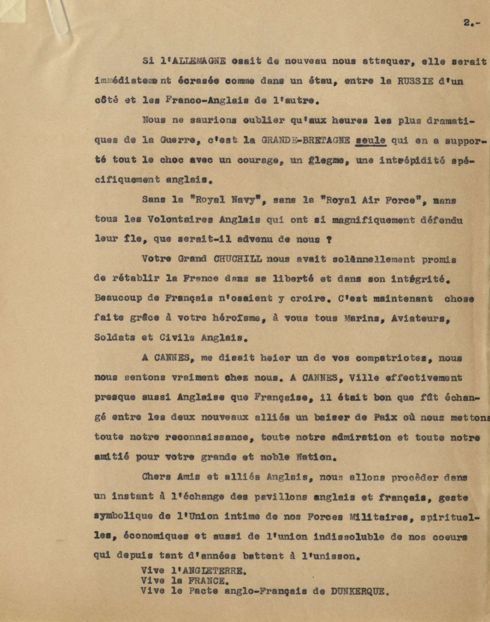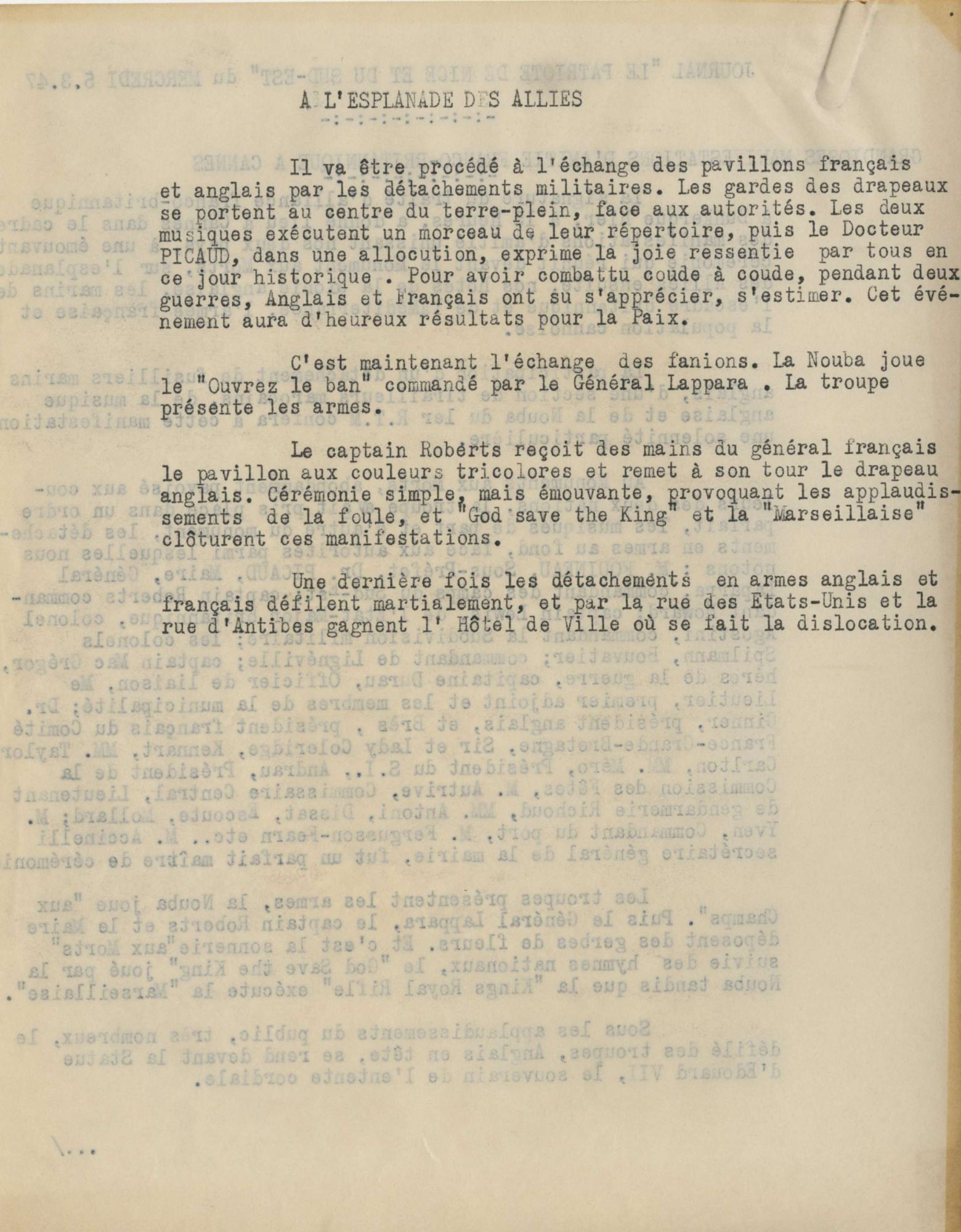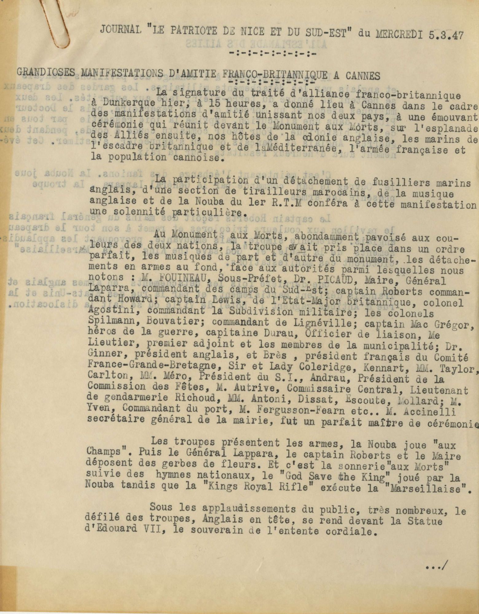 Il a été célébré dans un discours du maire le Dr Picaud en 1947 lors des grandes manifestations pour fêter l'amitié franco-britannique, après la signature à Dunkerque du traité d'alliance.