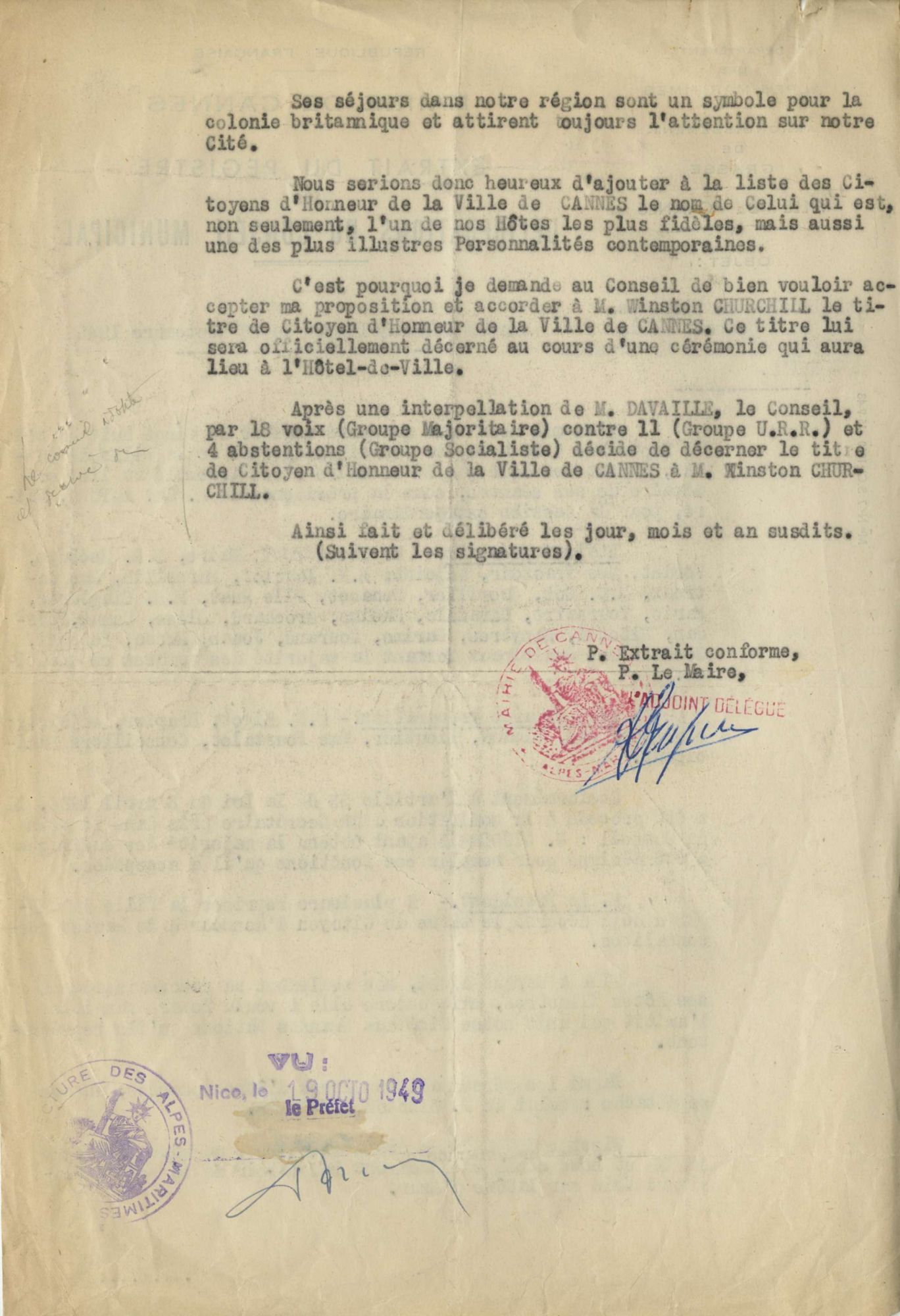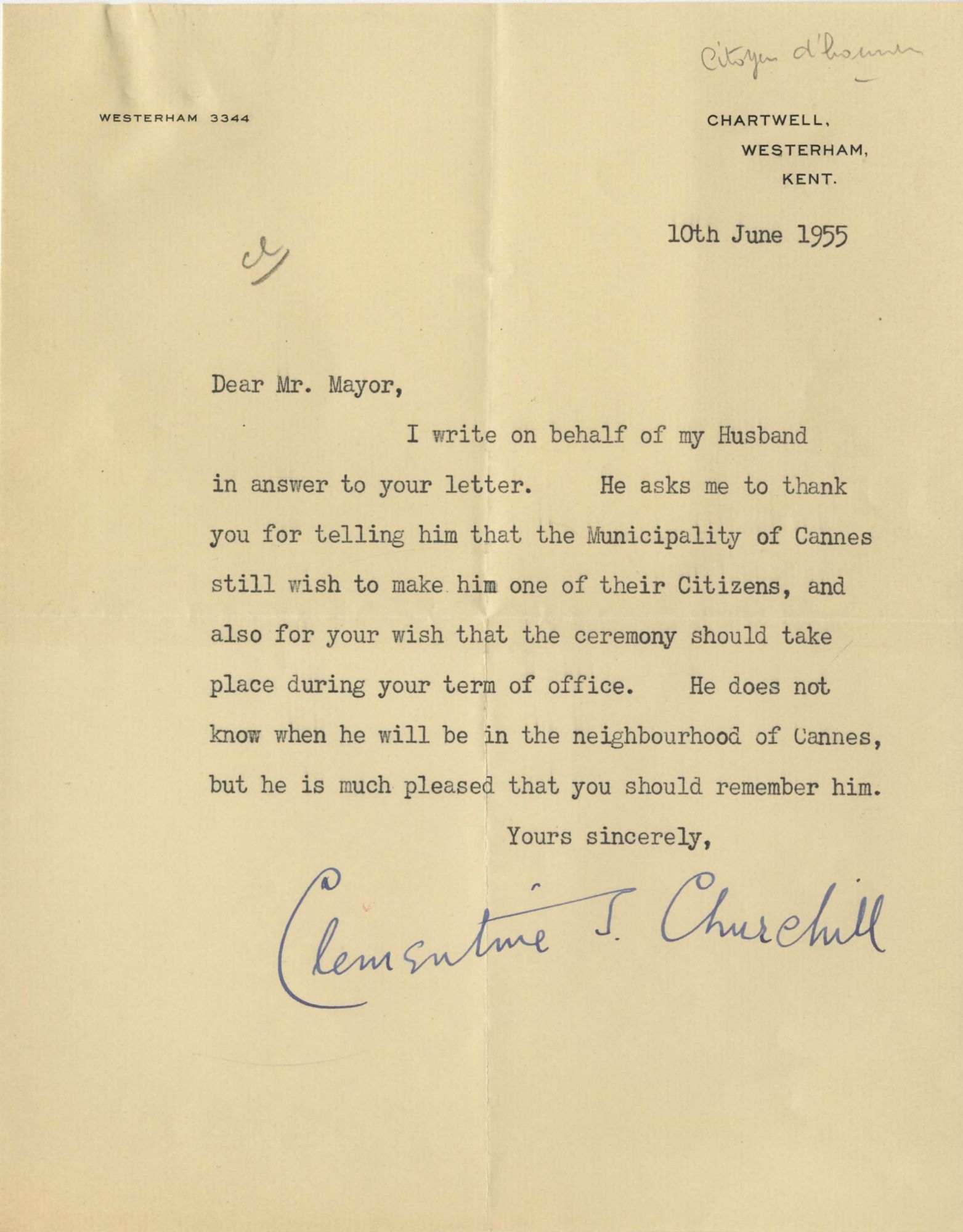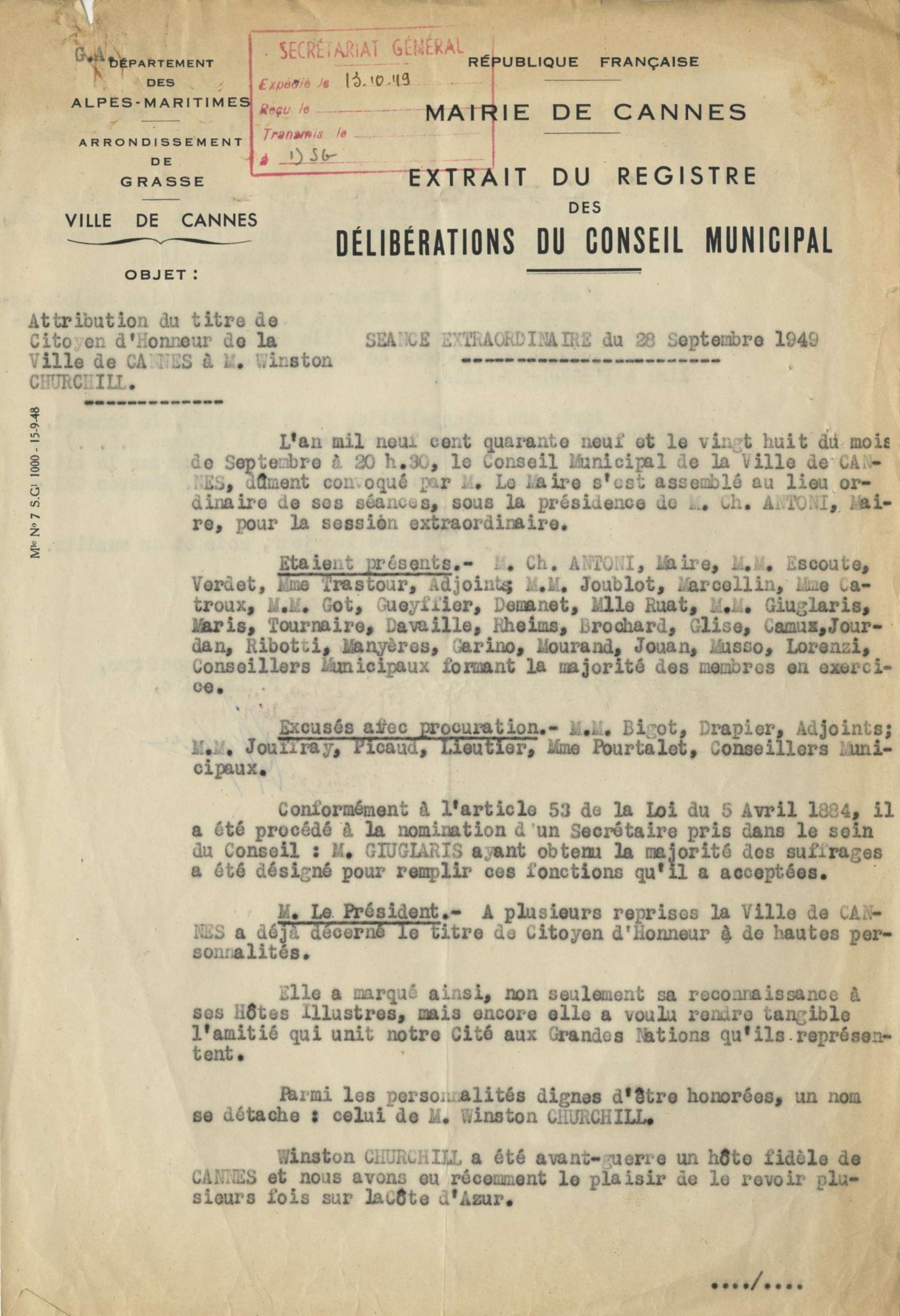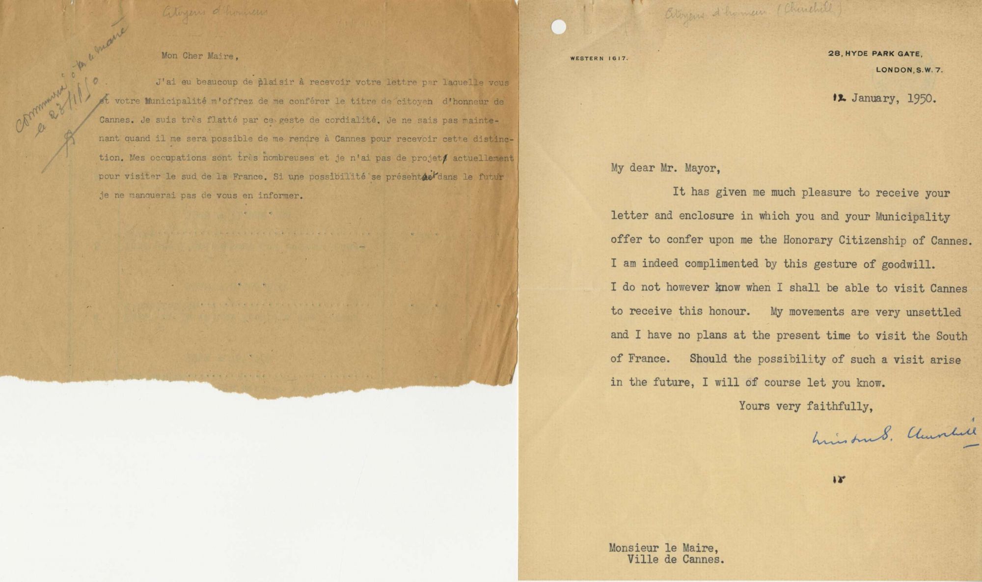 Winston Churchill a été fait citoyen d'honneur de Cannes en 1949.