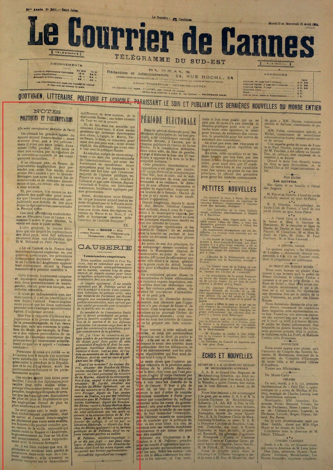 De 1904 à nos jours, l'Entente Cordiale a scellé le destin commun des deux peuples. La presse locale s'en fait l'écho et commente l'accord diplomatique.