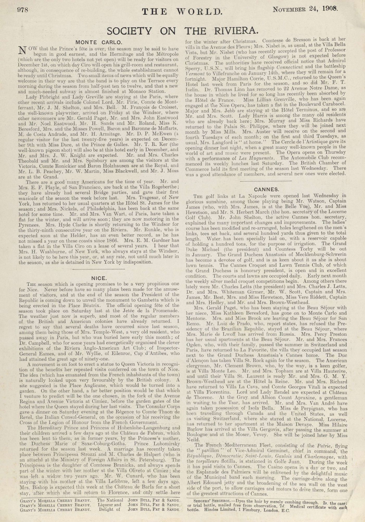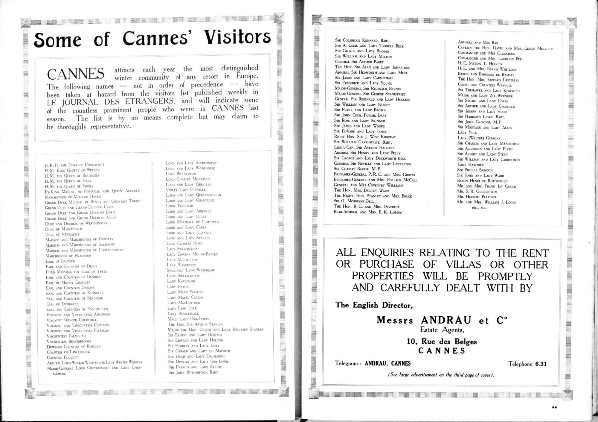 Les hôteliers se disputent cette clientèle et l'attirent à eux par des publicités ciblées, en langue anglaise, en se donnant des noms 'british'. La landed gentry adore passer l'hiver sur la Riviera, et spécialement à Cannes, une ville réputée pour la douceur de son climat. Villas et hôtels honorent le nom de leurs clients britanniques. La presse en langue anglaise parvient à Cannes dès l'arrivée des premiers colons et est diffusée au sein de leurs salons, de cercles ou d'associations d'hivernants.